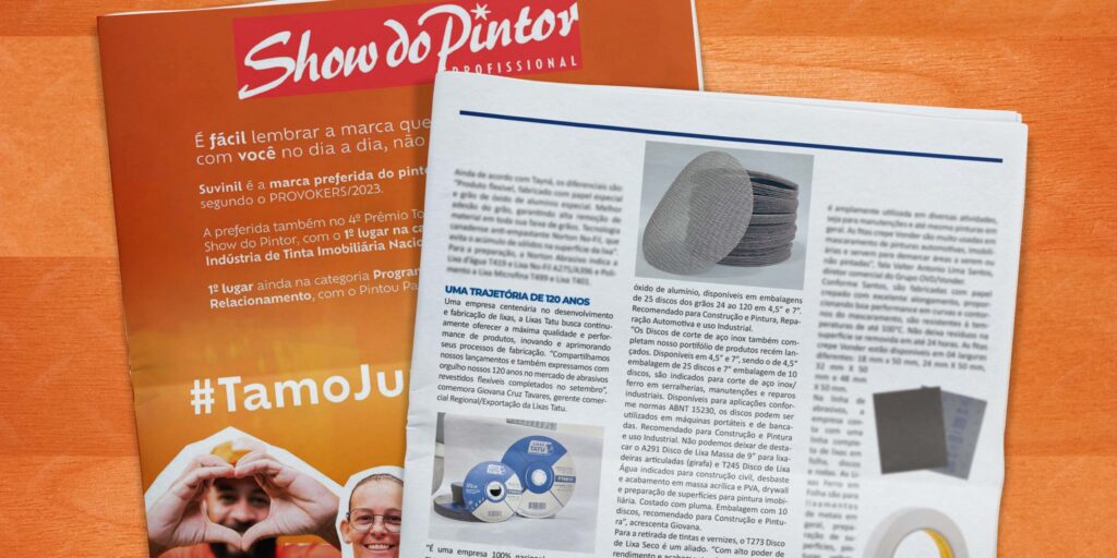 Edição 245 – Show do Pintor (Novembro 2023) Por Angelo Editora Uma empresa centenária no desenvolvimento e fabricação de lixas, a Lixas Tatu busca continuamente oferecer a máxima qualidade e performance de produtos, inovando e aprimorando seus processos de fabricação. “Compartilhamos nossos lançamentos e também expressamos com orgulho nossos 120 anos no mercado de abrasivos revestidos flexíveis completados no setembro”, comemora Giovana Cruz Tavares, gerente comercial Regional/Exportação da Lixas Tatu. “É uma empresa 100% nacional presente no mercado interno e externo, preocupada em entregar além de produtos e serviços, solução para o tratamento de qualquer tipo de superfície. Destacamos os recentes lançamentos inseridos em nosso portifólio para os mercados de Construção e Pintura, Reparação Automotiva, Indústria Moveleira e uso industrial”, avisa Giovana. O R641 Disco de Lixa Telada Tatunet é indicado para desbaste e acabamento em massa plástica, massa acrílica, massa poliéster, drywall, madeira, MDF, remoção de tintas velhas em diversa superfícies. Produzido com óxido de alumínio, disponíveis em embalagens de 25 discos e 50 discos dos grãos 80 ao 320 em 6”, 7” e 9”. Recomendado para construção e pintura, reparação automotiva e indústria moveleira. Já o FT05 Disco de Lixa Tatu é indicado para remoção de soldas, nivelamento e limpeza de superfícies, rebarbações, desbastes e aplicações em ferramentaria em geral. Produzido com óxido de alumínio, disponíveis em embalagens de 25 discos dos grãos 24 ao 120 em 4,5” e 7”. Recomendado para Construção e Pintura, Reparação Automotiva e uso Industrial. “Os Discos de corte de aço inox também completam nosso portifólio de produtos recém lançados. Disponíveis em 4,5” e 7”, sendo o de 4,5” embalagem de 25 discos e 7” embalagem de 10 discos, são indicados para corte de aço inox/ ferro em serralherias, manutenções e reparos industriais. Disponíveis para aplicações conformenormas ABNT 15230, os discos podem ser utilizados em máquinas portáteis e de bancadas. Recomendado para Construção e Pintura e uso Industrial. Não podemos deixar de destacaro A291 Disco de Lixa Massa de 9” para lixadeiras articuladas (girafa) e T245 Disco de LixaÁgua indicados para construção civil, desbaste e acabamento em massa acrílica e PVA, drywalle preparação de superfícies para pintura imobiliária. Costado com pluma. Embalagem com 10discos, recomendado para Construção e Pintura”, acrescenta Giovana. Para a retirada de tintas e vernizes, o T273 Disco de Lixa Seco é um aliado. “Com alto poder derendimento e acabamento, destinado para lixamento de massa plástica, massa poliéster, primers,lacas, seladoras e vernizes nos segmentos automotivo e moveleiro, está disponível do grão 40 ao 800. 6” – 6 furos – costado com pluma. Possui camada de antiempastante. Embalagem 50 discos. Convido você a acessar o nosso site e conhecer todos os produtos disponíveis em nossa linha sabendo-se que os mesmos atendem ao mercado de Reparação Automotiva, Indústria Moveleira, Industrial, Segurança, Construção e Pintura além de produtos especiais que vão desde o uso doméstico à linha de Higiene e beleza. O tratamento da superfície é muito importante desde o desbaste ao fino acabamento fazendo com que nossos produtos sejam utilizados em todas as etapas. Se é Tatu, pode confiar”, conclui Giovana.