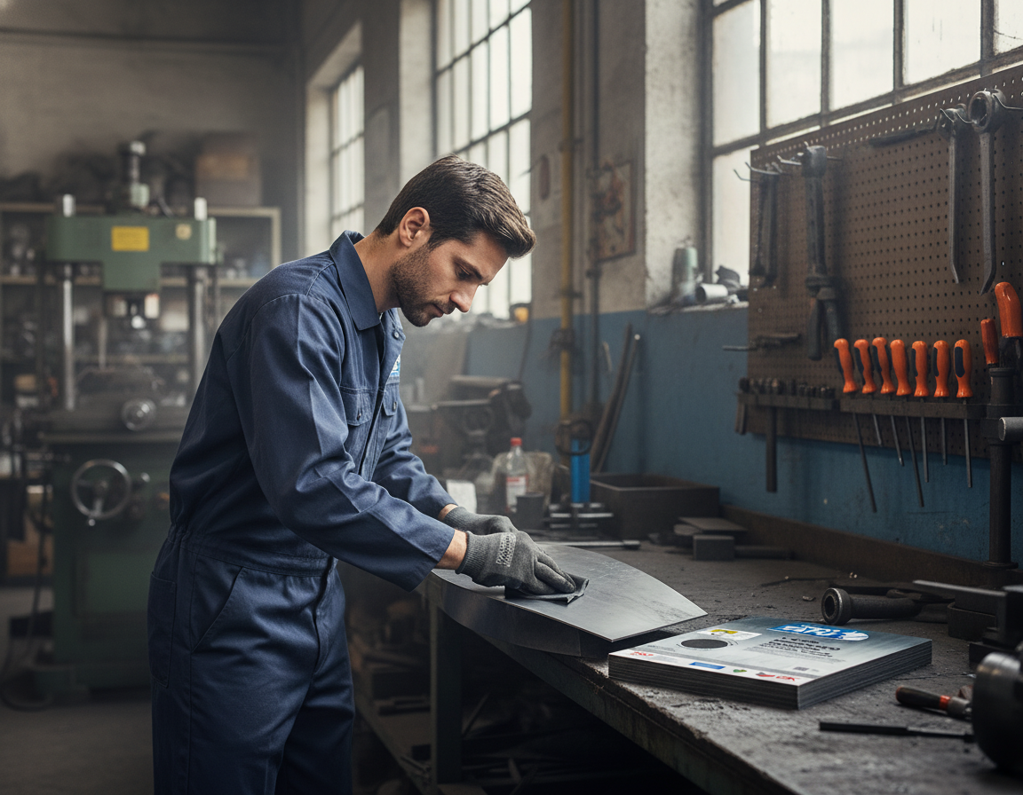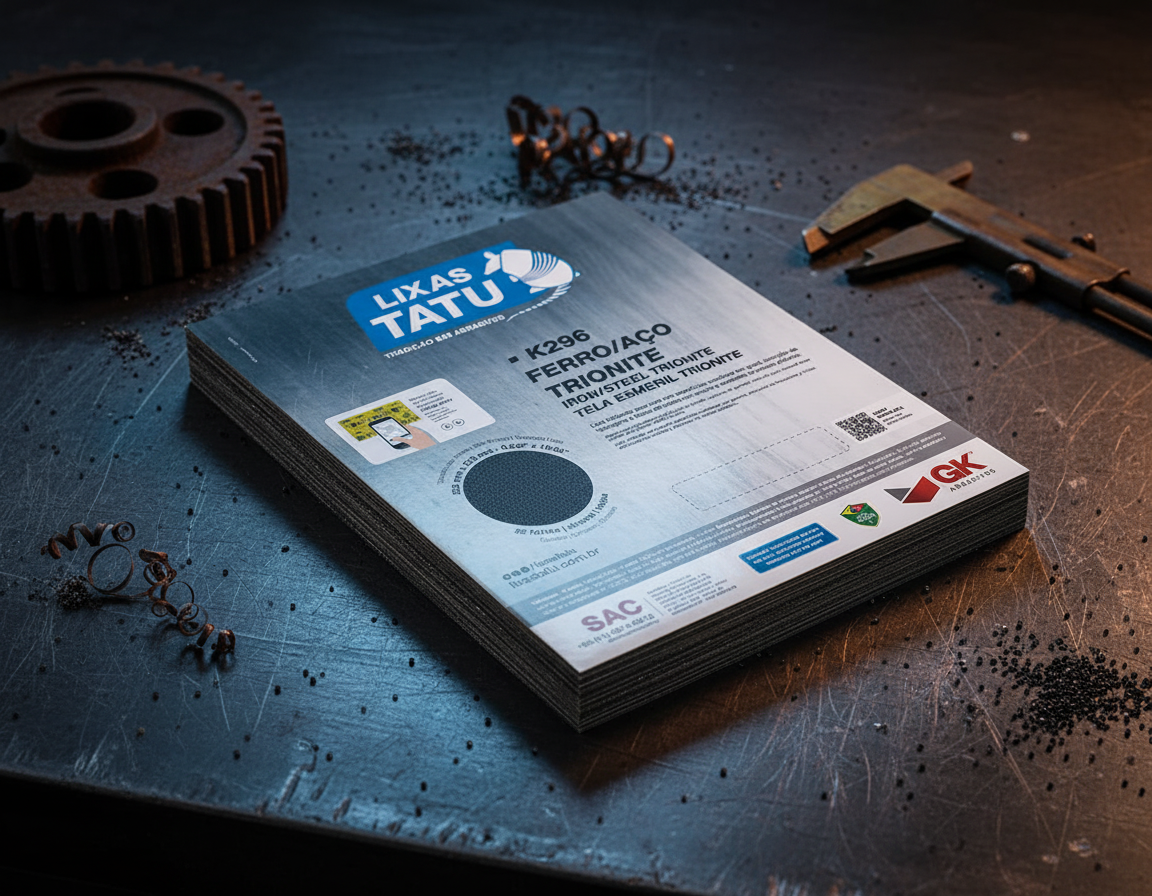 Antes de qualquer tinta, existe o metal. E o metal, muitas vezes, chega com ferrugem, tinta velha ou resíduos que precisam ser removidos sem cerimônia. É para esse momento que a Trionite foi desenvolvida — com costado de pano e grãos de óxido de alumínio marrom que trabalham com pressão real, sem rasgar e sem perder o corte antes da hora.
